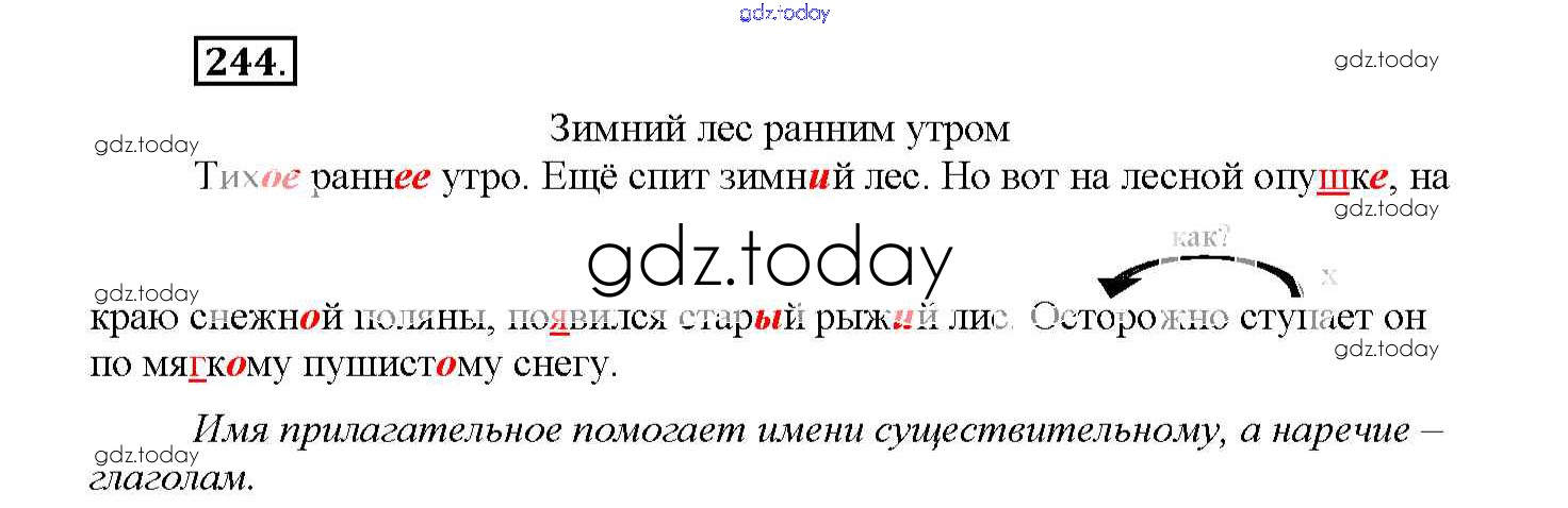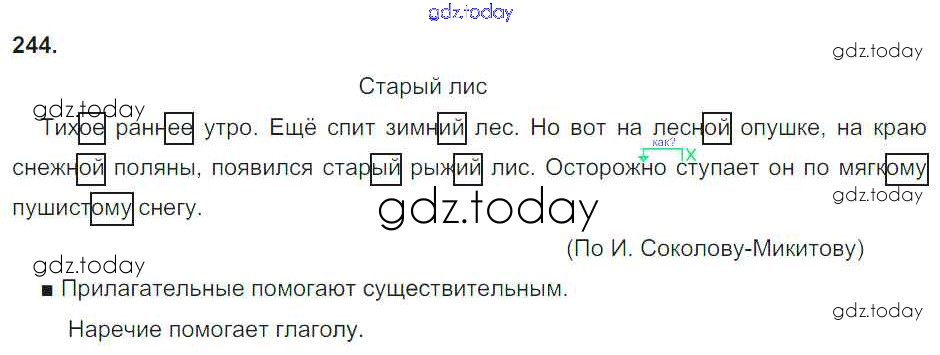На страницах сайта gdz.today вы найдете учебный и вспомогательный материал, направленный на улучшения знаний школьной программы. ГДЗ - онлайн мир знаний Решение к части 1. Упражнения 244 Учебнику по Русскому языку для 4 класса Соловейчик, Кузьменко Ассоциация 21 век Гармония 2015