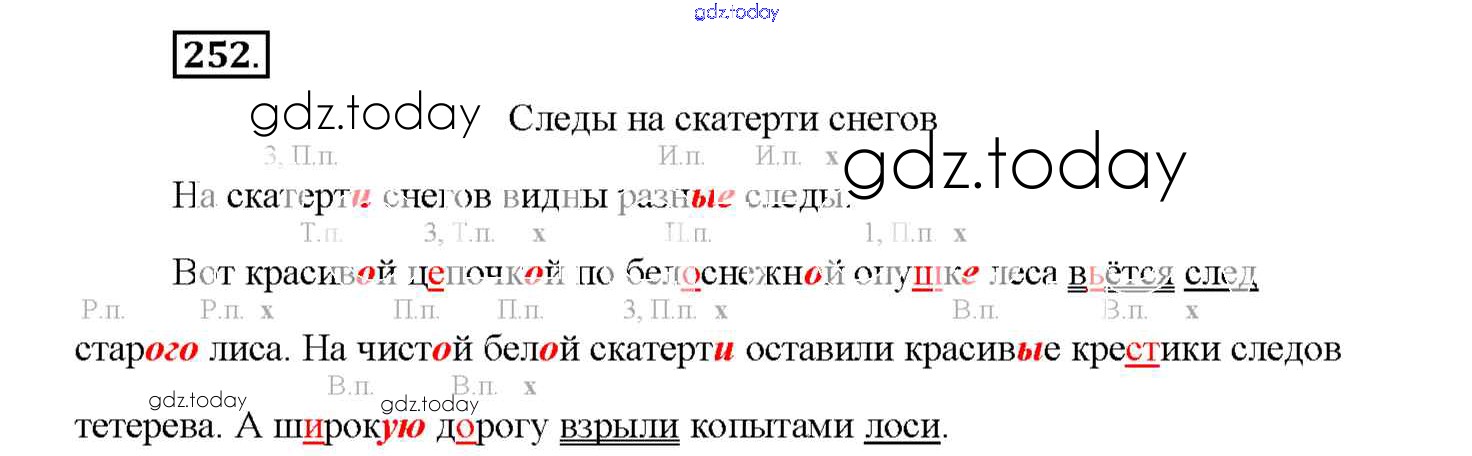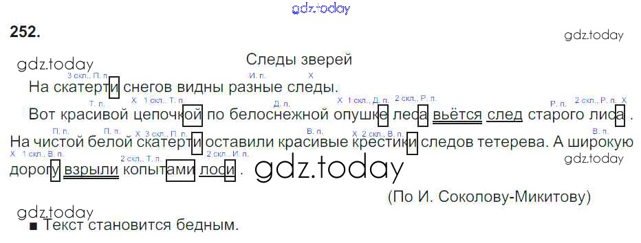 На страницах сайта gdz.today вы найдете учебный и вспомогательный материал, направленный на улучшения знаний школьной программы. ГДЗ - онлайн мир знаний Решение к части 1. Упражнения 252 Учебнику по Русскому языку для 4 класса Соловейчик, Кузьменко Ассоциация 21 век Гармония 2015