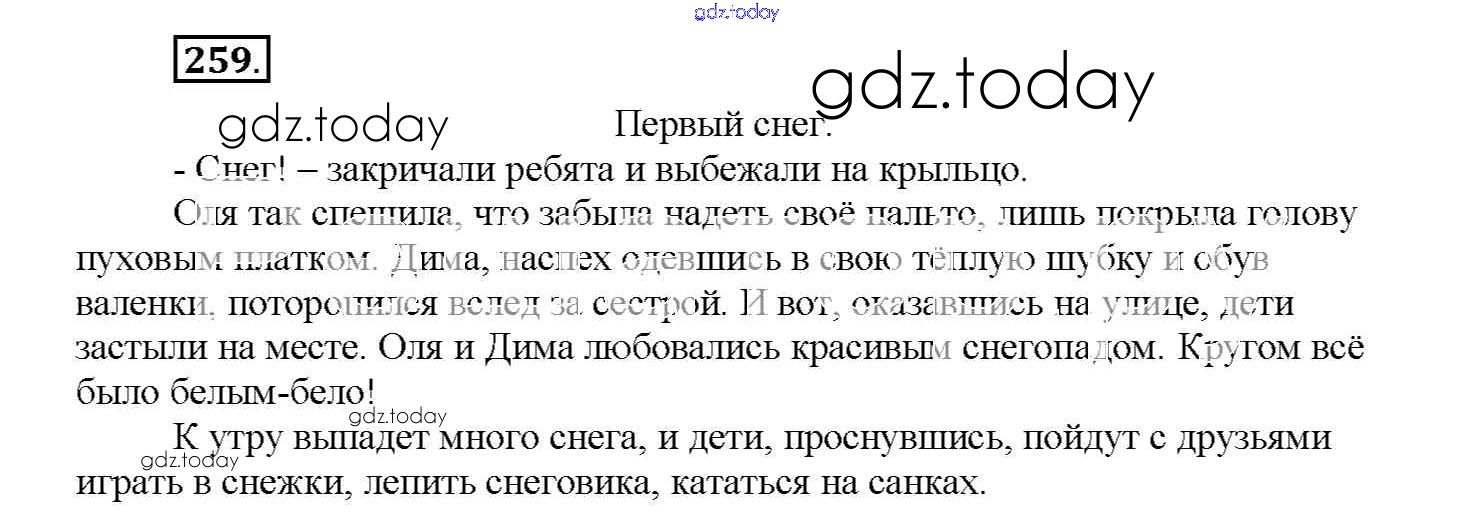 На страницах сайта gdz.today вы найдете учебный и вспомогательный материал, направленный на улучшения знаний школьной программы. ГДЗ - онлайн мир знаний Решение к части 1. Упражнения 259 Учебнику по Русскому языку для 4 класса Соловейчик, Кузьменко Ассоциация 21 век Гармония 2015