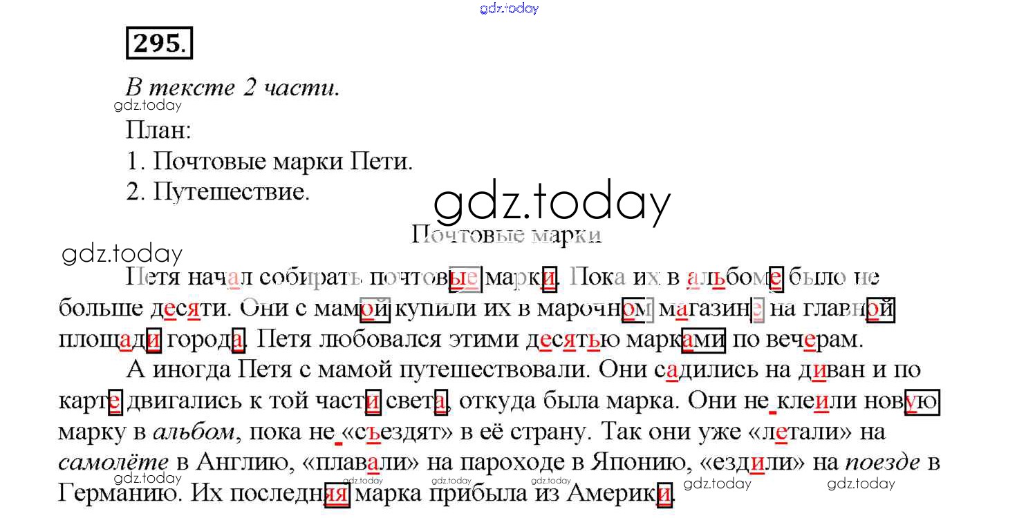 На страницах сайта gdz.today вы найдете учебный и вспомогательный материал, направленный на улучшения знаний школьной программы. ГДЗ - онлайн мир знаний Решение к части 1. Упражнения 295 Учебнику по Русскому языку для 4 класса Соловейчик, Кузьменко Ассоциация 21 век Гармония 2015