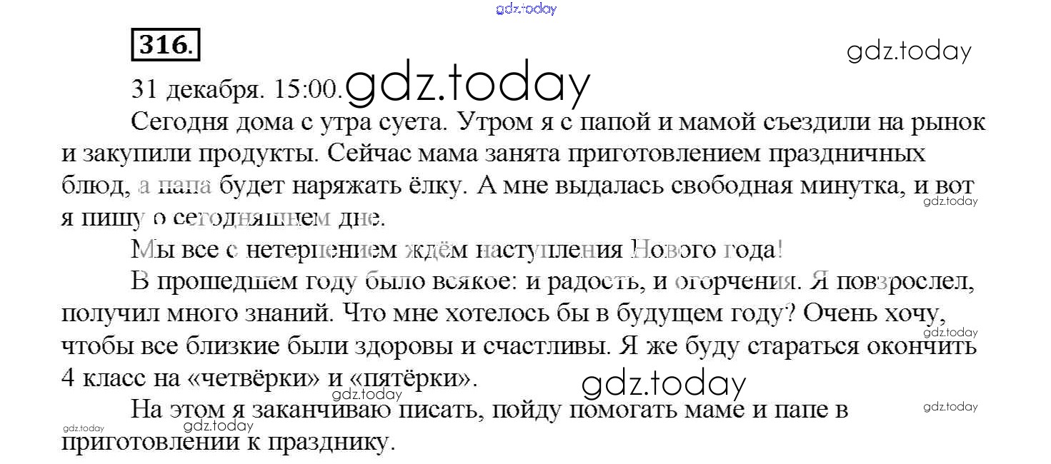 На страницах сайта gdz.today вы найдете учебный и вспомогательный материал, направленный на улучшения знаний школьной программы. ГДЗ - онлайн мир знаний Решение к части 1. Упражнения 316 Учебнику по Русскому языку для 4 класса Соловейчик, Кузьменко Ассоциация 21 век Гармония 2015