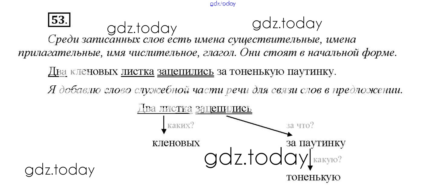 На страницах сайта gdz.today вы найдете учебный и вспомогательный материал, направленный на улучшения знаний школьной программы. ГДЗ - онлайн мир знаний Решение к части 1. Упражнения 53 Учебнику по Русскому языку для 4 класса Соловейчик, Кузьменко Ассоциация 21 век Гармония 2015
