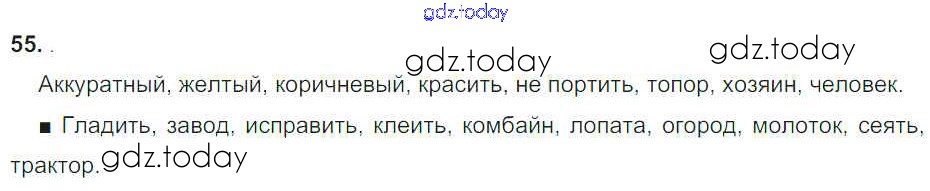На страницах сайта gdz.today вы найдете учебный и вспомогательный материал, направленный на улучшения знаний школьной программы. ГДЗ - онлайн мир знаний Решение к части 1. Упражнения 55 Учебнику по Русскому языку для 4 класса Соловейчик, Кузьменко Ассоциация 21 век Гармония 2015