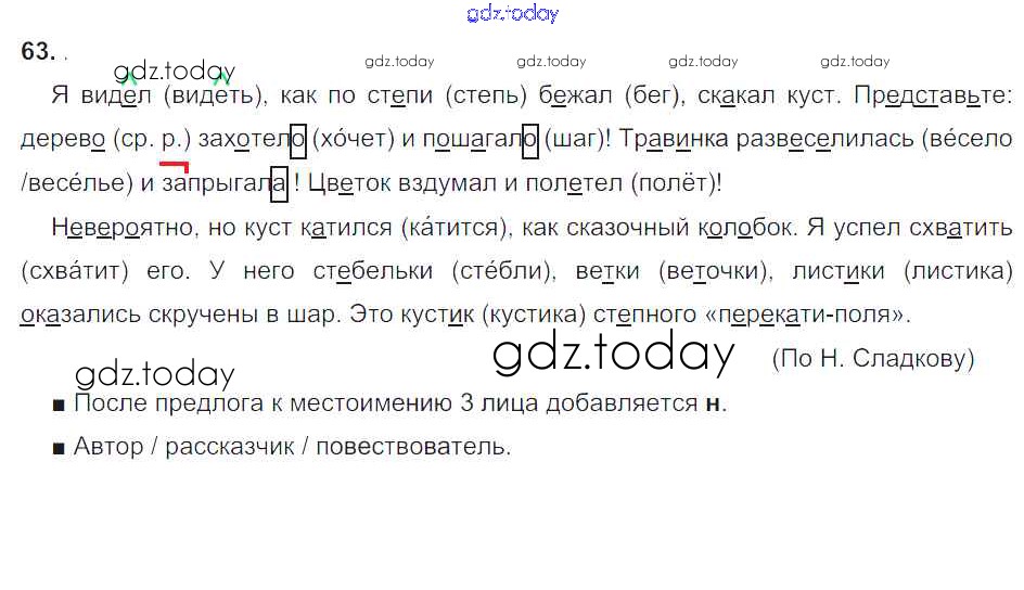 На страницах сайта gdz.today вы найдете учебный и вспомогательный материал, направленный на улучшения знаний школьной программы. ГДЗ - онлайн мир знаний Решение к части 1. Упражнения 63 Учебнику по Русскому языку для 4 класса Соловейчик, Кузьменко Ассоциация 21 век Гармония 2015