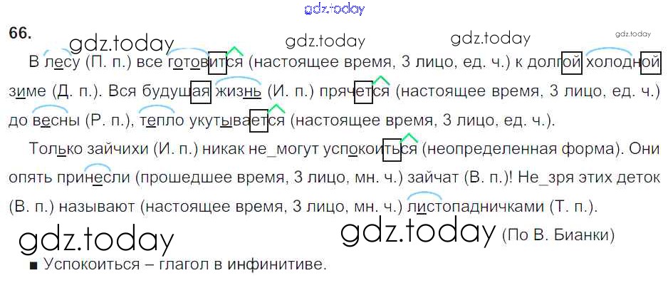 На страницах сайта gdz.today вы найдете учебный и вспомогательный материал, направленный на улучшения знаний школьной программы. ГДЗ - онлайн мир знаний Решение к части 1. Упражнения 66 Учебнику по Русскому языку для 4 класса Соловейчик, Кузьменко Ассоциация 21 век Гармония 2015