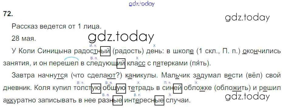 На страницах сайта gdz.today вы найдете учебный и вспомогательный материал, направленный на улучшения знаний школьной программы. ГДЗ - онлайн мир знаний Решение к части 1. Упражнения 72 Учебнику по Русскому языку для 4 класса Соловейчик, Кузьменко Ассоциация 21 век Гармония 2015