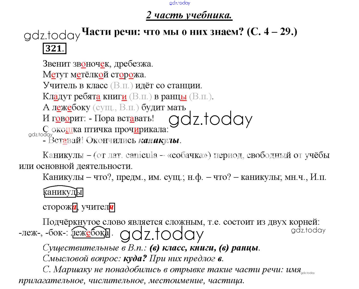 На страницах сайта gdz.today вы найдете учебный и вспомогательный материал, направленный на улучшения знаний школьной программы. ГДЗ - онлайн мир знаний Решение к части 2. Упражнения 321 Учебнику по Русскому языку для 4 класса Соловейчик, Кузьменко Ассоциация 21 век Гармония 2015