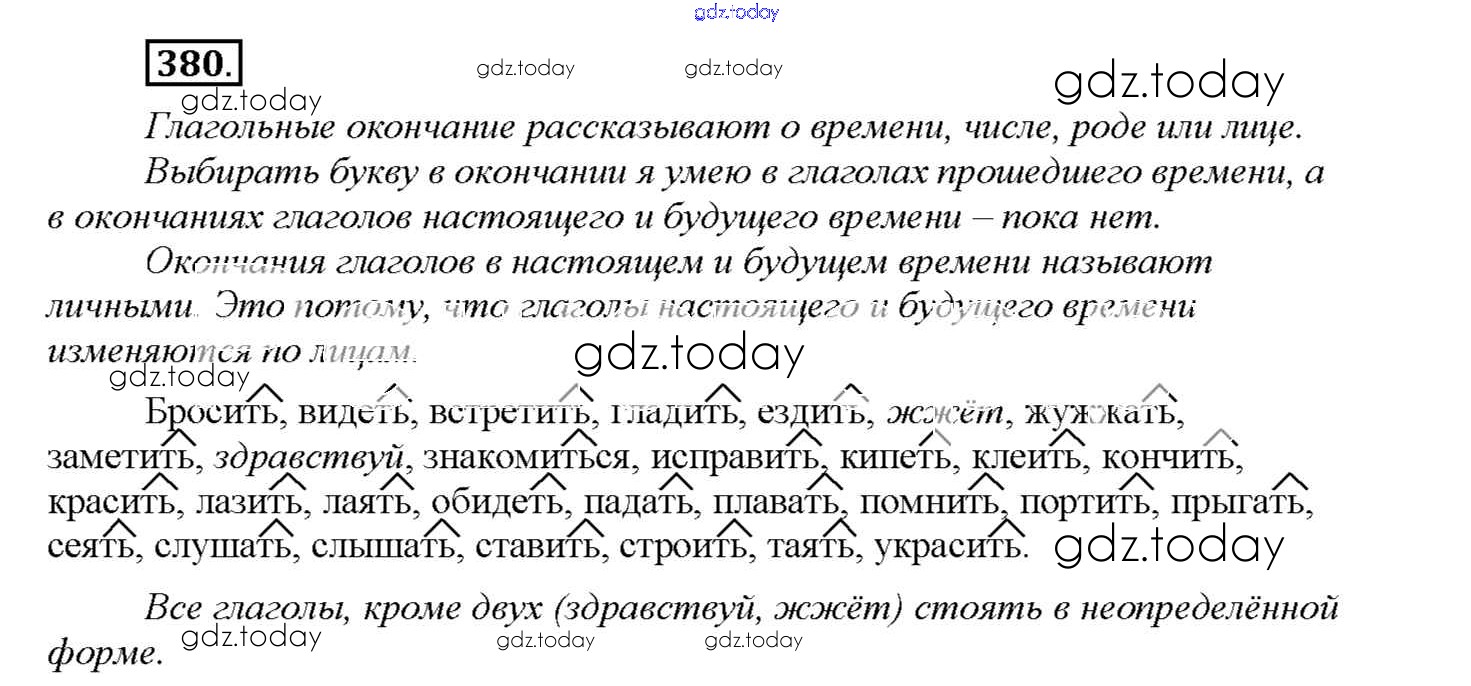 На страницах сайта gdz.today вы найдете учебный и вспомогательный материал, направленный на улучшения знаний школьной программы. ГДЗ - онлайн мир знаний Решение к части 2. Упражнения 380 Учебнику по Русскому языку для 4 класса Соловейчик, Кузьменко Ассоциация 21 век Гармония 2015
