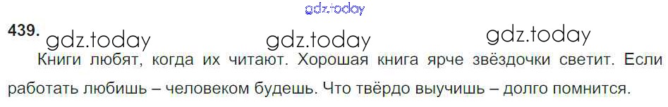 На страницах сайта gdz.today вы найдете учебный и вспомогательный материал, направленный на улучшения знаний школьной программы. ГДЗ - онлайн мир знаний Решение к части 2. Упражнения 439 Учебнику по Русскому языку для 4 класса Соловейчик, Кузьменко Ассоциация 21 век Гармония 2015