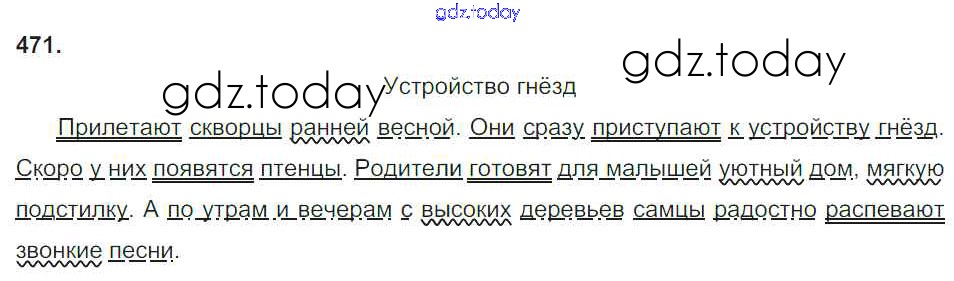 На страницах сайта gdz.today вы найдете учебный и вспомогательный материал, направленный на улучшения знаний школьной программы. ГДЗ - онлайн мир знаний Решение к части 2. Упражнения 471 Учебнику по Русскому языку для 4 класса Соловейчик, Кузьменко Ассоциация 21 век Гармония 2015