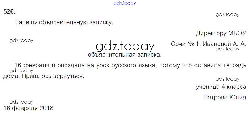 На страницах сайта gdz.today вы найдете учебный и вспомогательный материал, направленный на улучшения знаний школьной программы. ГДЗ - онлайн мир знаний Решение к части 2. Упражнения 526 Учебнику по Русскому языку для 4 класса Соловейчик, Кузьменко Ассоциация 21 век Гармония 2015