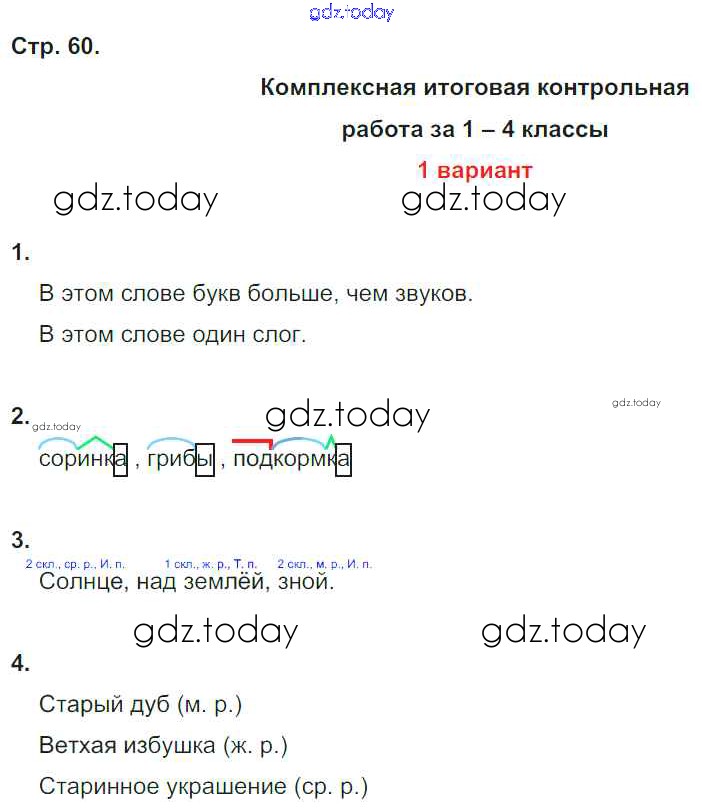 На страницах сайта gdz.today вы найдете учебный и вспомогательный материал, направленный на улучшения знаний школьной программы. ГДЗ - онлайн мир знаний Страницы (решение) 60 Тетради для контрольных работ по Русскому языку для 4 класса Романова, Петленко Вентана-граф Начальная школа XXI века 2018