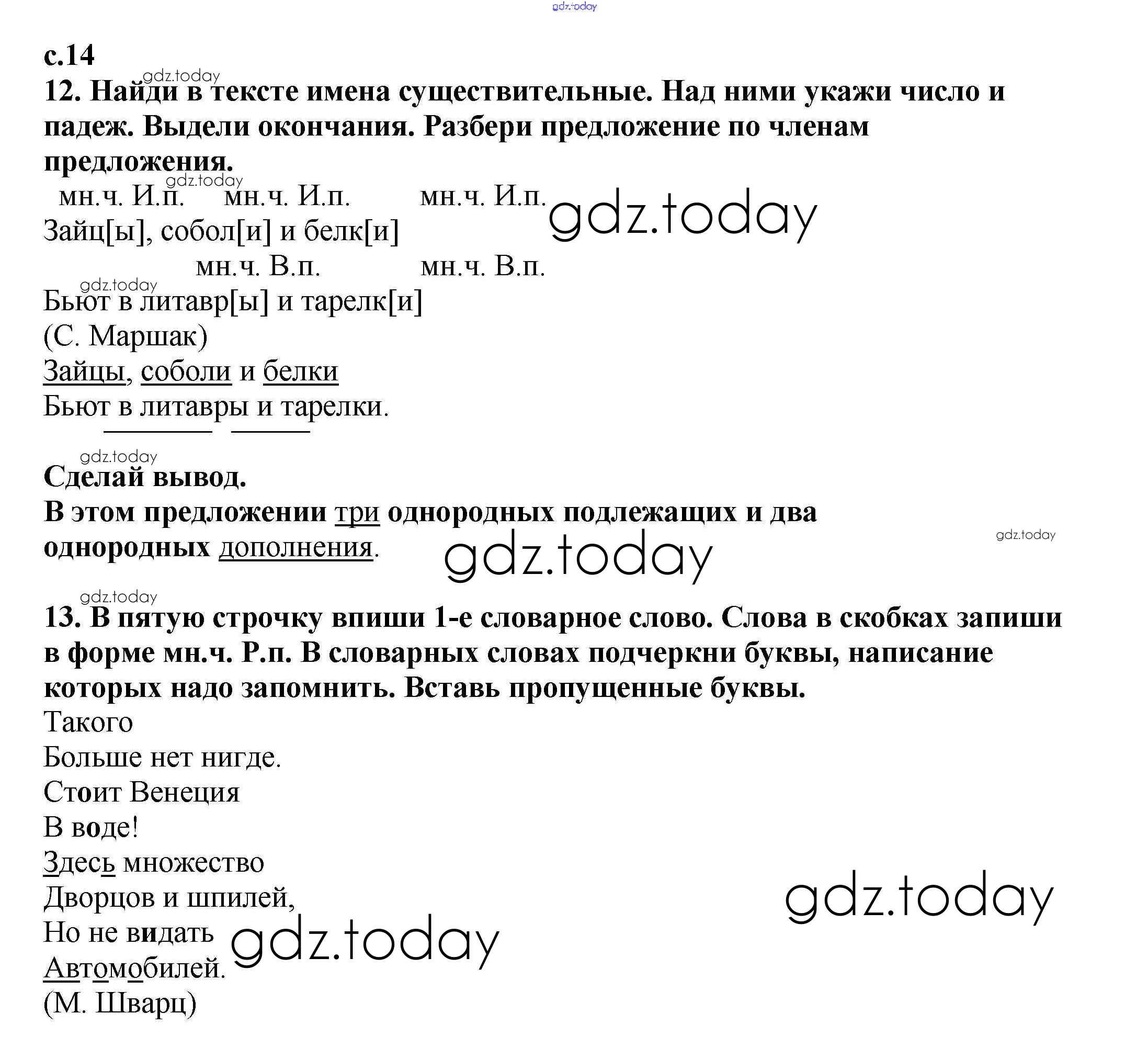 Ответы к Решение. Часть 1. Страницы 14 Тетради для самостоятельной работы по Русскому языку для 4 класса Байкова Академкнига 2016
