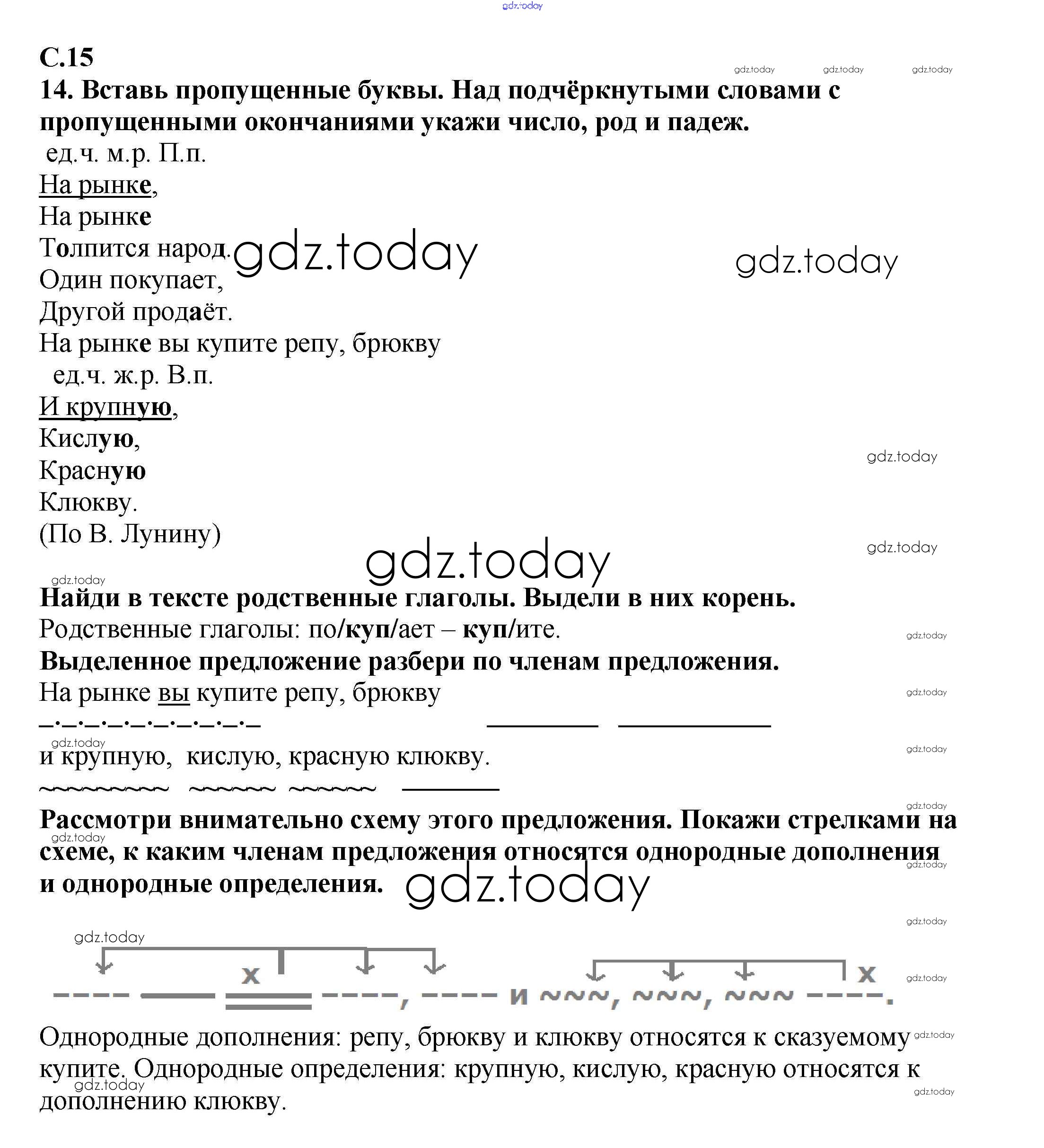 Ответы к Решение. Часть 1. Страницы 15 Тетради для самостоятельной работы по Русскому языку для 4 класса Байкова Академкнига 2016