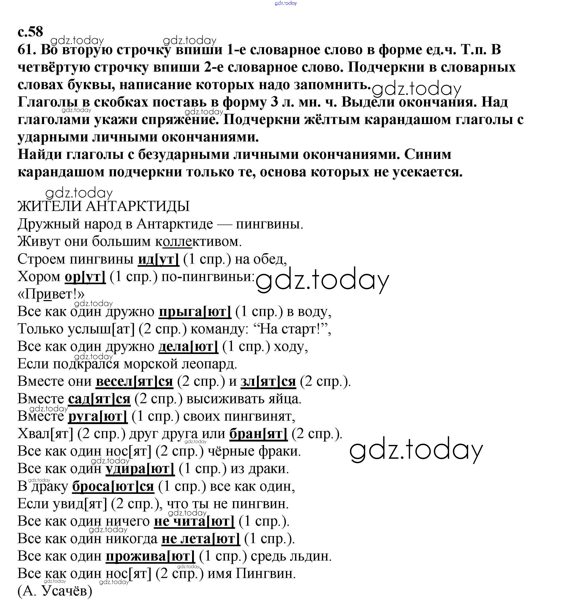 Ответы к Решение. Часть 1. Страницы 58 Тетради для самостоятельной работы по Русскому языку для 4 класса Байкова Академкнига 2016