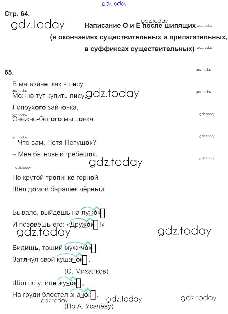 На страницах сайта gdz.today вы найдете учебный и вспомогательный материал, направленный на улучшения знаний школьной программы. ГДЗ - онлайн мир знаний Решение. Часть 1. Страницы 64 Тетради для самостоятельной работы по Русскому языку для 4 класса Байкова Академкнига 2016