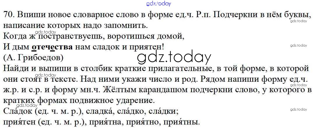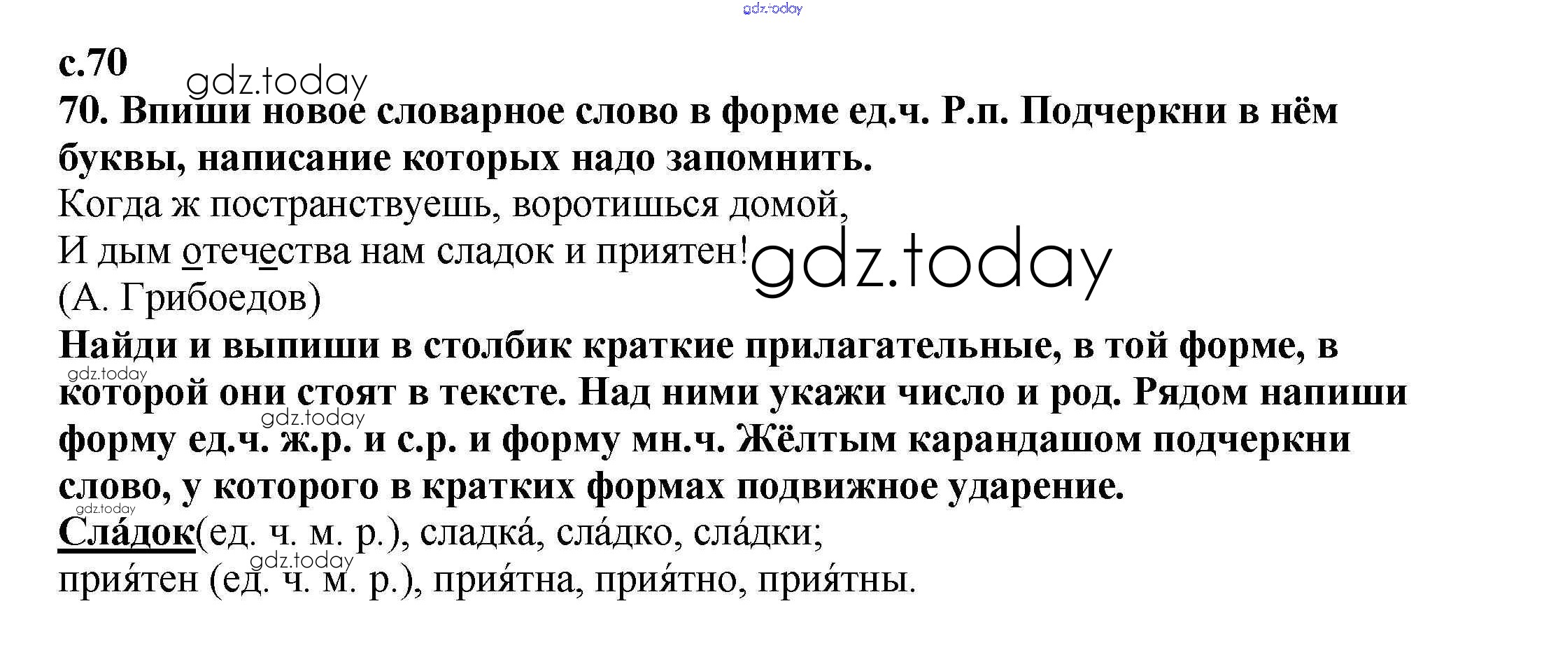 На страницах сайта gdz.today вы найдете учебный и вспомогательный материал, направленный на улучшения знаний школьной программы. ГДЗ - онлайн мир знаний Решение. Часть 1. Страницы 70 Тетради для самостоятельной работы по Русскому языку для 4 класса Байкова Академкнига 2016