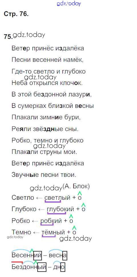 Ответы к Решение. Часть 1. Страницы 76 Тетради для самостоятельной работы по Русскому языку для 4 класса Байкова Академкнига 2016