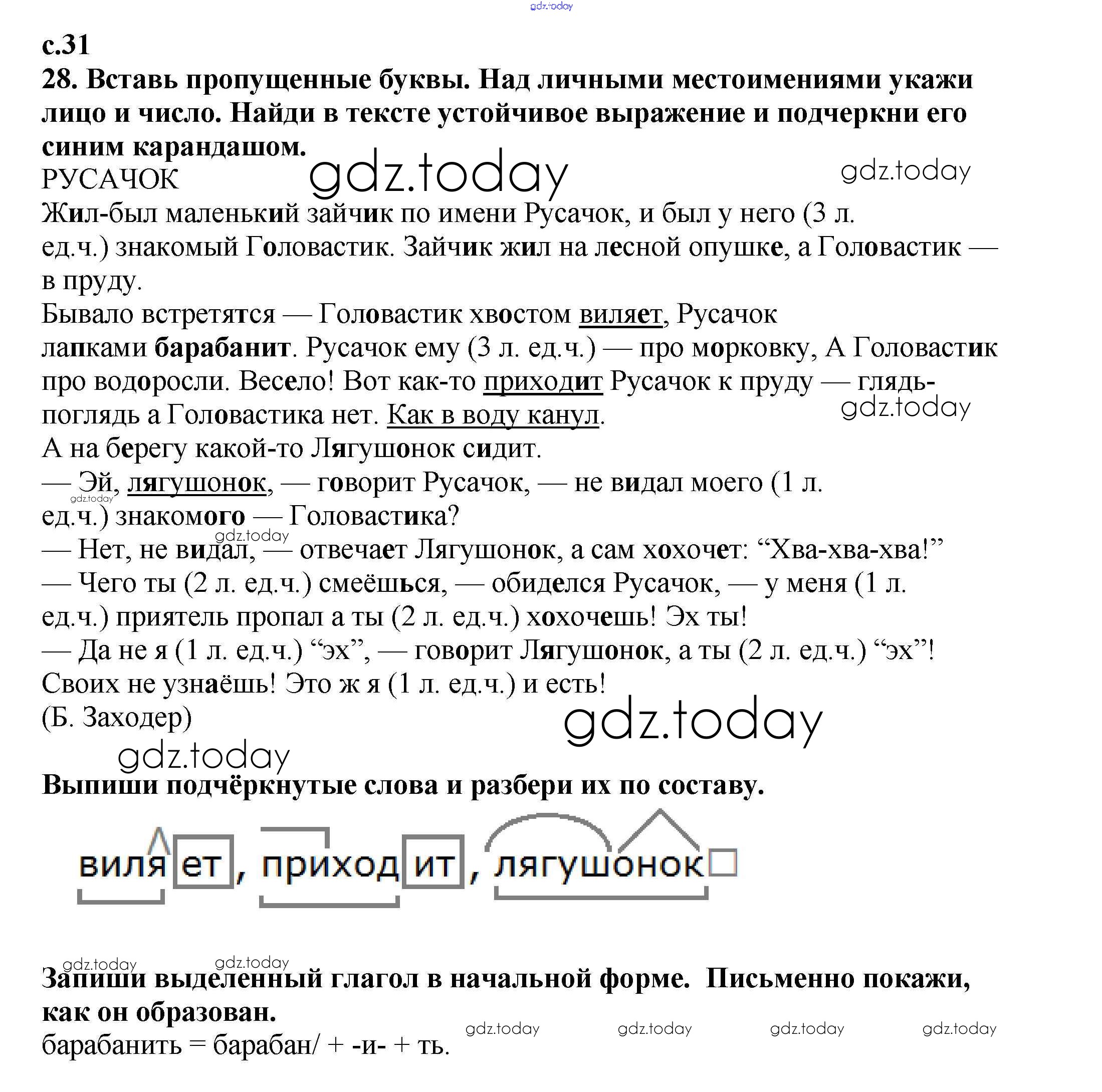 Ответы к Решение. Часть 2. Страницы 31 Тетради для самостоятельной работы по Русскому языку для 4 класса Байкова Академкнига 2016