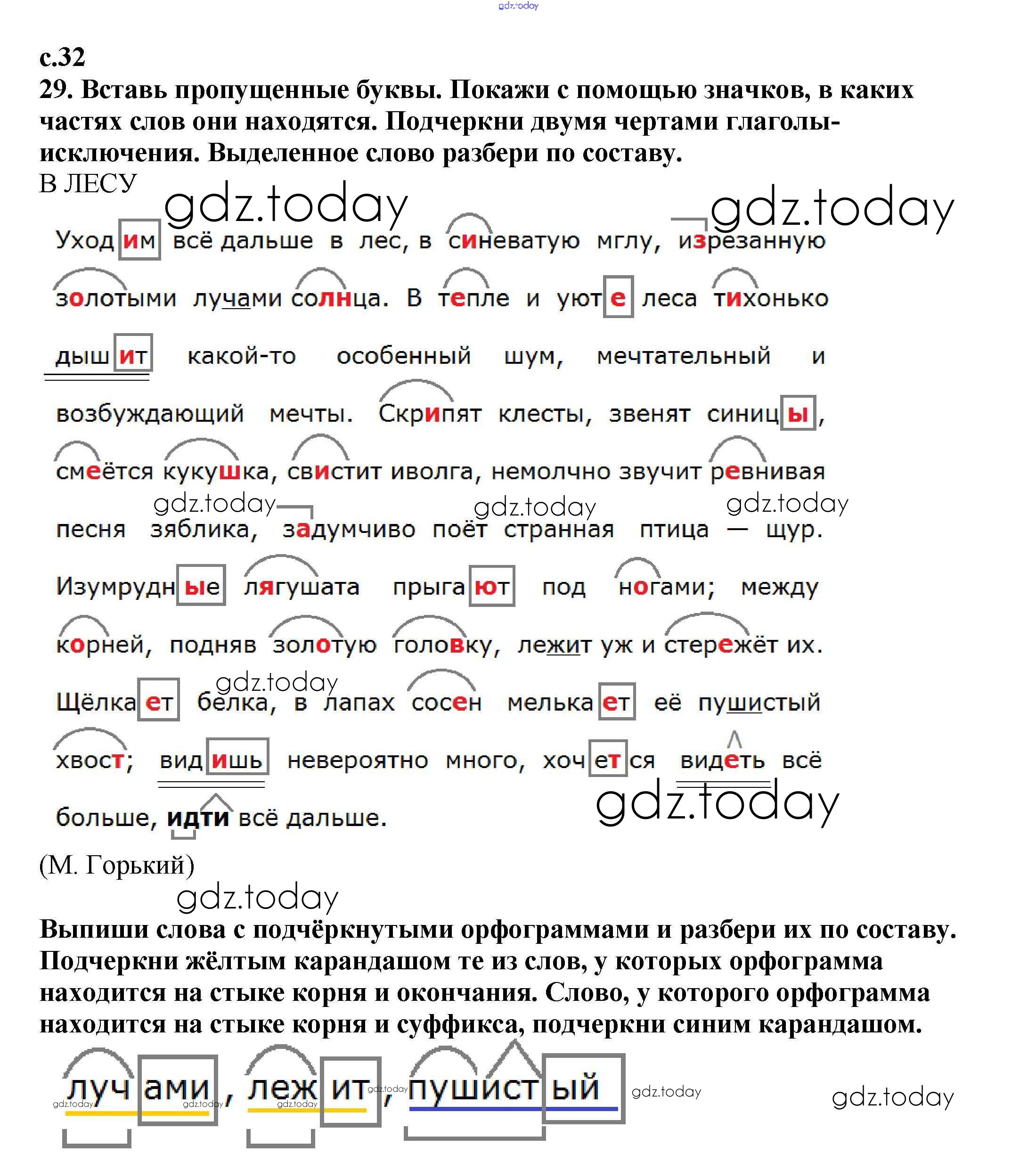Ответы к Решение. Часть 2. Страницы 32 Тетради для самостоятельной работы по Русскому языку для 4 класса Байкова Академкнига 2016
