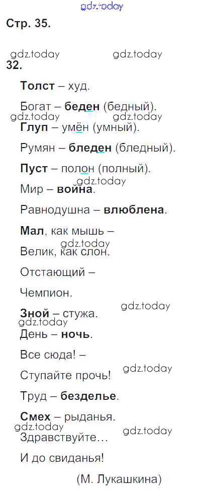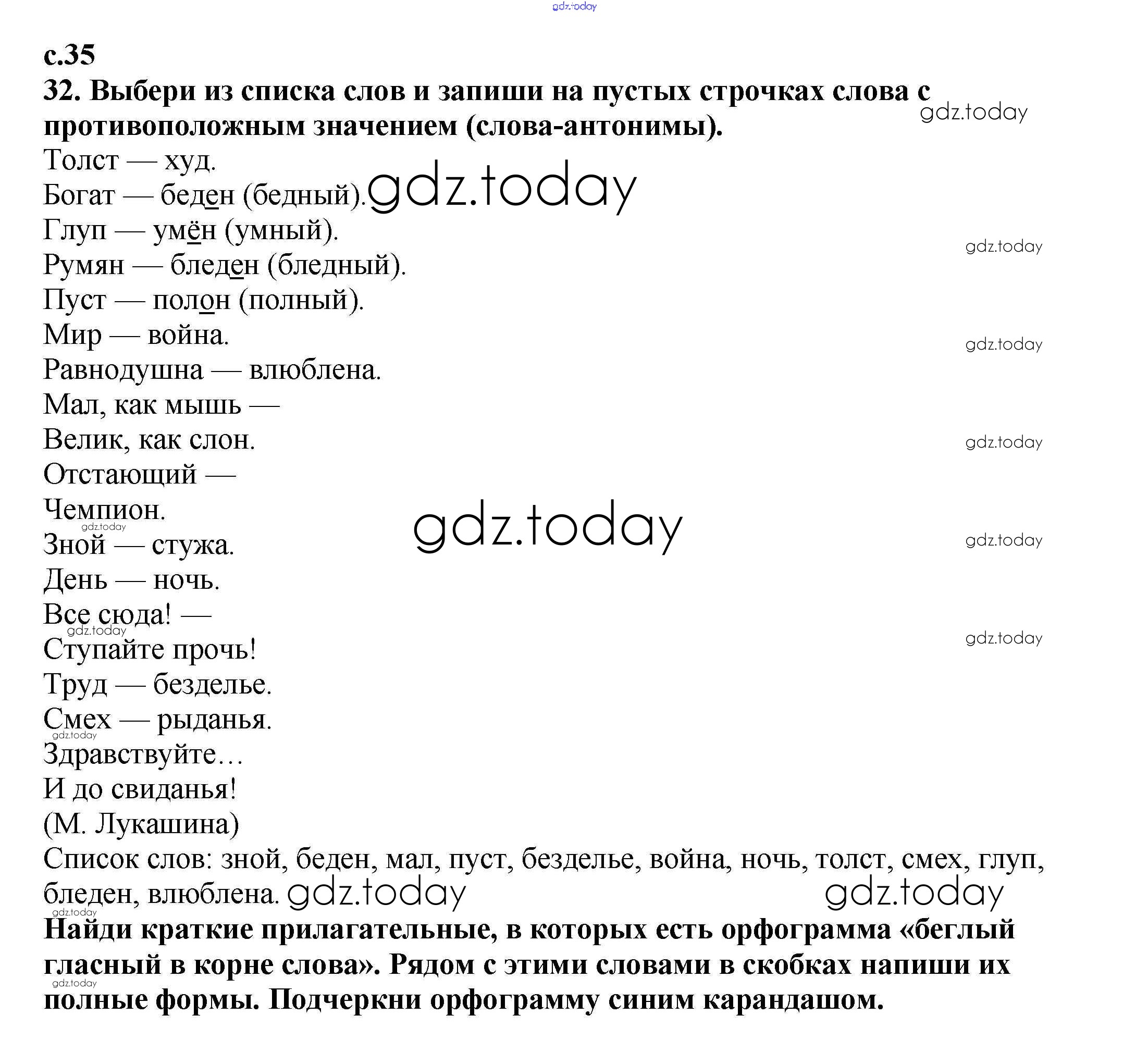 На страницах сайта gdz.today вы найдете учебный и вспомогательный материал, направленный на улучшения знаний школьной программы. ГДЗ - онлайн мир знаний Решение. Часть 2. Страницы 35 Тетради для самостоятельной работы по Русскому языку для 4 класса Байкова Академкнига 2016