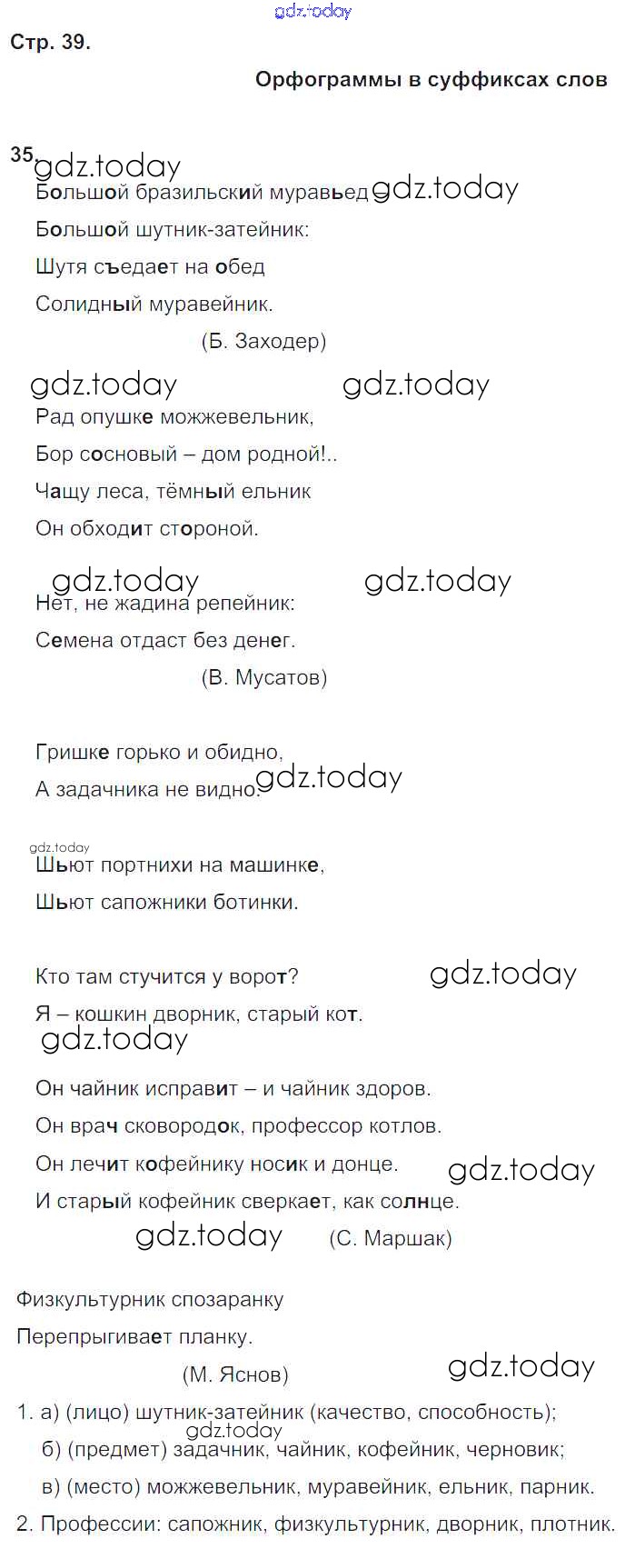 Ответы к Решение. Часть 2. Страницы 39 Тетради для самостоятельной работы по Русскому языку для 4 класса Байкова Академкнига 2016