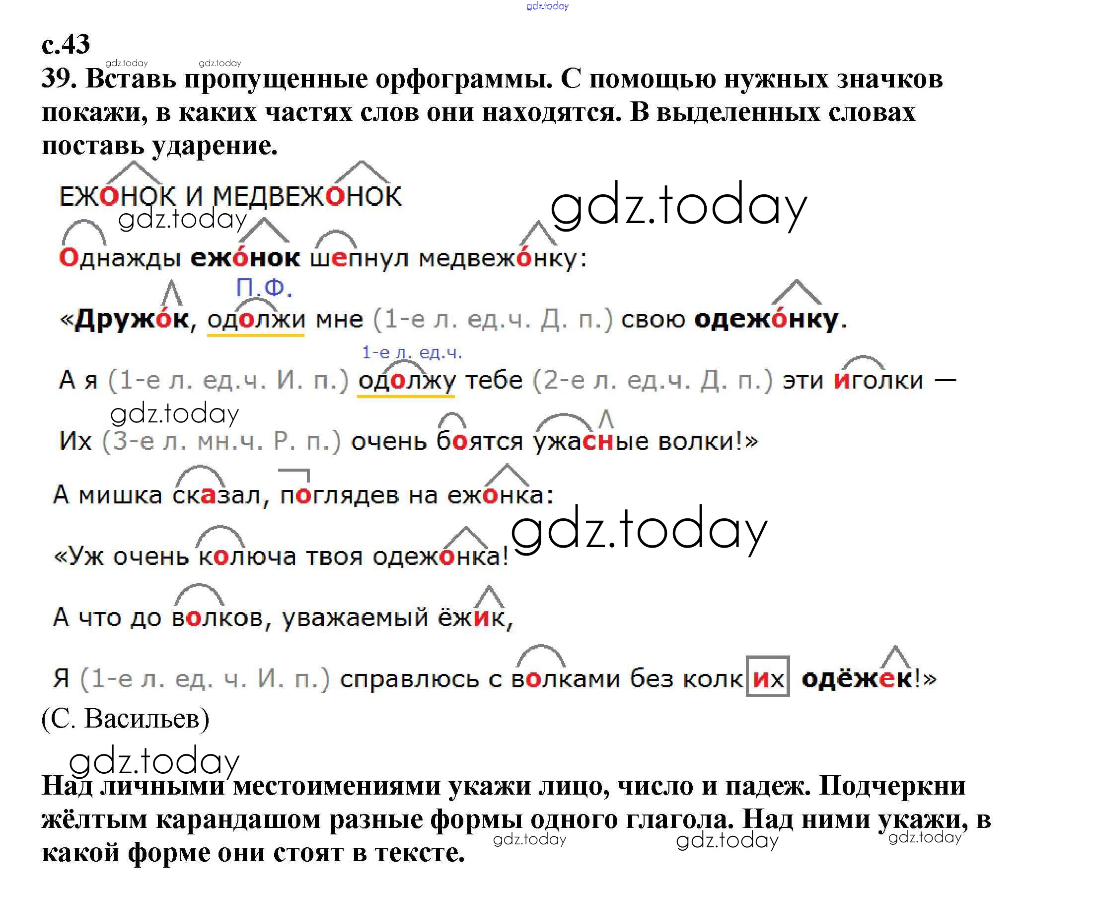 Ответы к Решение. Часть 2. Страницы 43 Тетради для самостоятельной работы по Русскому языку для 4 класса Байкова Академкнига 2016