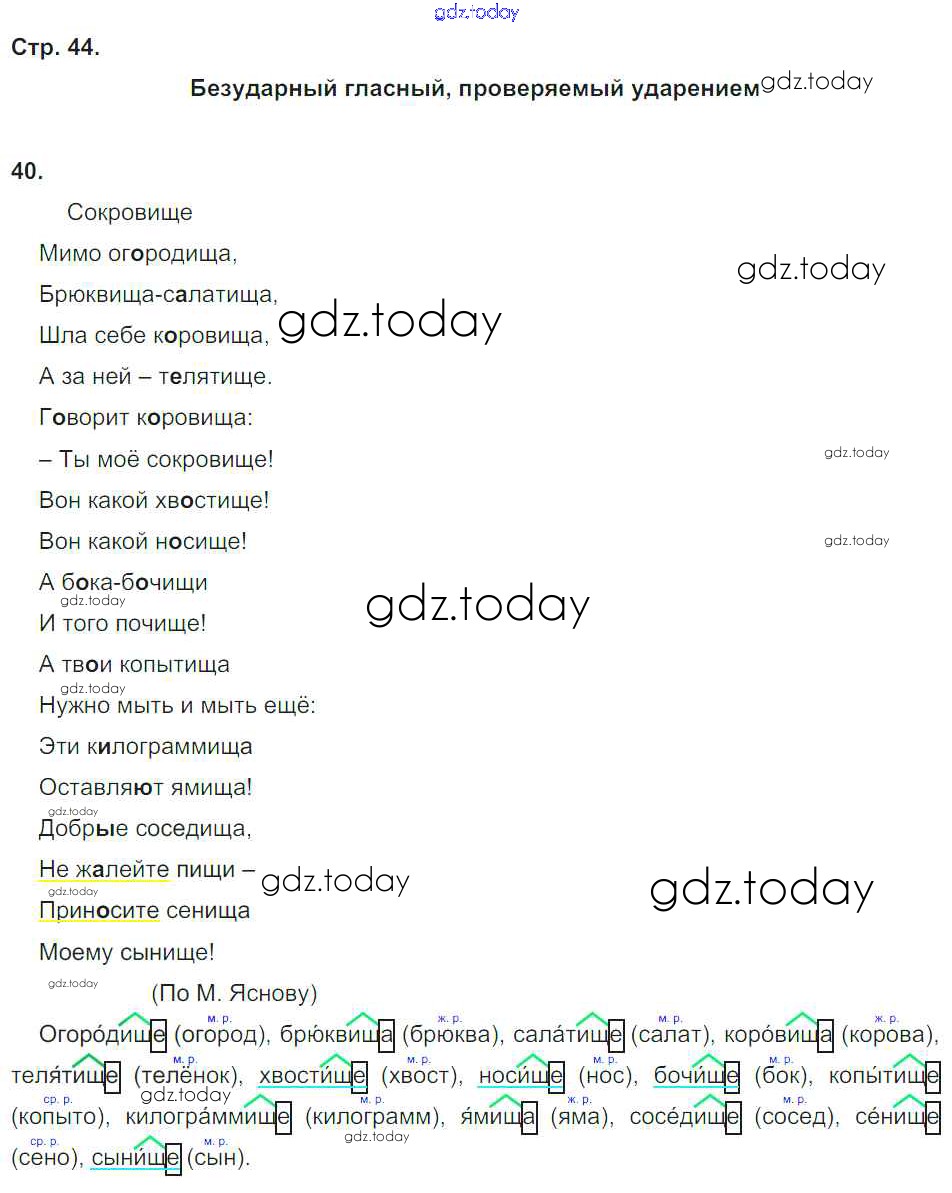 Ответы к Решение. Часть 2. Страницы 44 Тетради для самостоятельной работы по Русскому языку для 4 класса Байкова Академкнига 2016