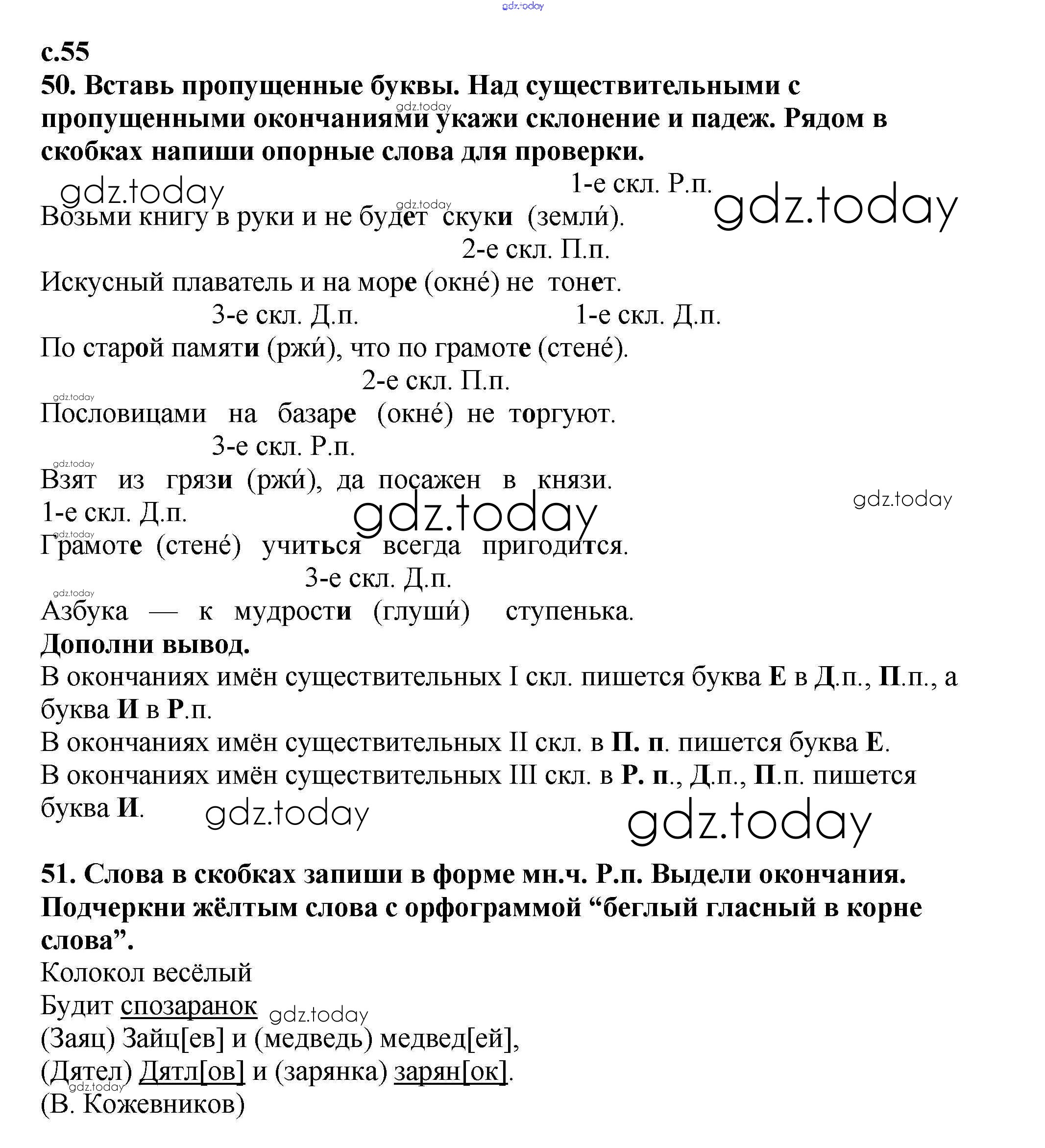 На страницах сайта gdz.today вы найдете учебный и вспомогательный материал, направленный на улучшения знаний школьной программы. ГДЗ - онлайн мир знаний Решение. Часть 2. Страницы 55 Тетради для самостоятельной работы по Русскому языку для 4 класса Байкова Академкнига 2016