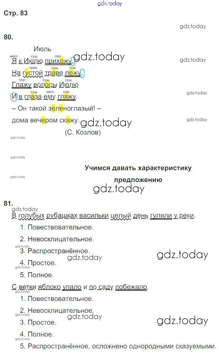 На страницах сайта gdz.today вы найдете учебный и вспомогательный материал, направленный на улучшения знаний школьной программы. ГДЗ - онлайн мир знаний Решение. Часть 2. Страницы 83 Тетради для самостоятельной работы по Русскому языку для 4 класса Байкова Академкнига 2016