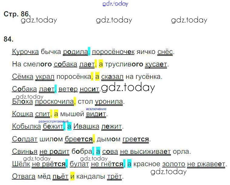 На страницах сайта gdz.today вы найдете учебный и вспомогательный материал, направленный на улучшения знаний школьной программы. ГДЗ - онлайн мир знаний Решение. Часть 2. Страницы 86 Тетради для самостоятельной работы по Русскому языку для 4 класса Байкова Академкнига 2016