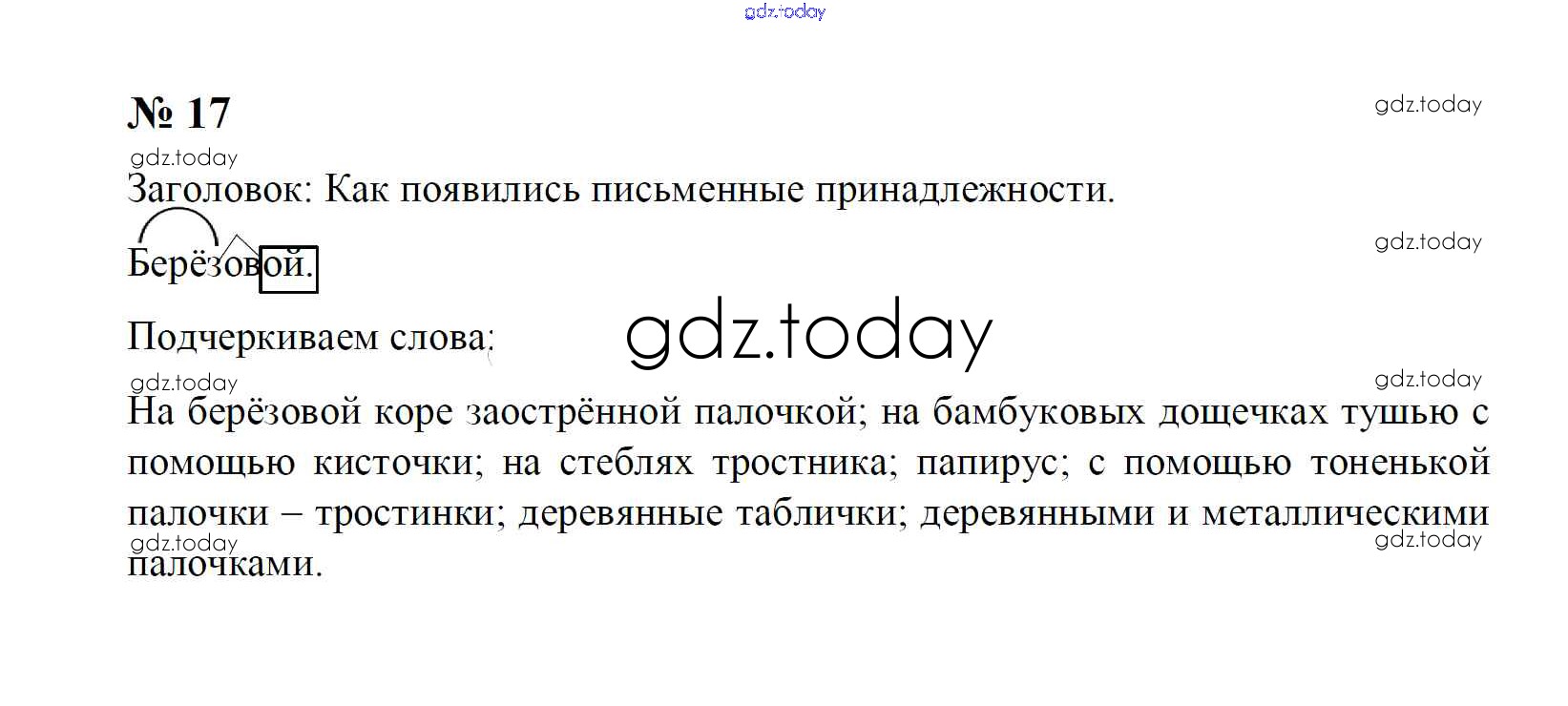 На страницах сайта gdz.today вы найдете учебный и вспомогательный материал, направленный на улучшения знаний школьной программы. ГДЗ - онлайн мир знаний Решение к части 1. (упражнения) 17 Тетради для упражнений по Русскому языку для 4 класса Рамзаева, Свинкина Дрофа 2013