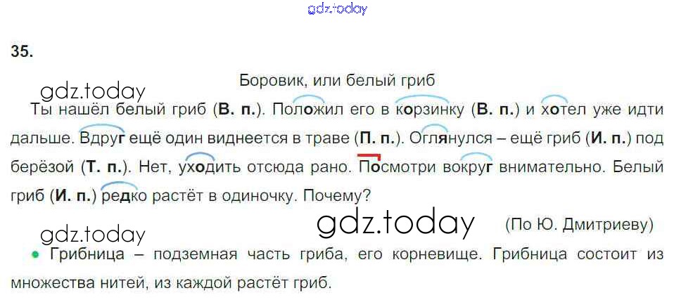 На страницах сайта gdz.today вы найдете учебный и вспомогательный материал, направленный на улучшения знаний школьной программы. ГДЗ - онлайн мир знаний Решение к части 1. (упражнения) 35 Тетради для упражнений по Русскому языку для 4 класса Рамзаева, Свинкина Дрофа 2013