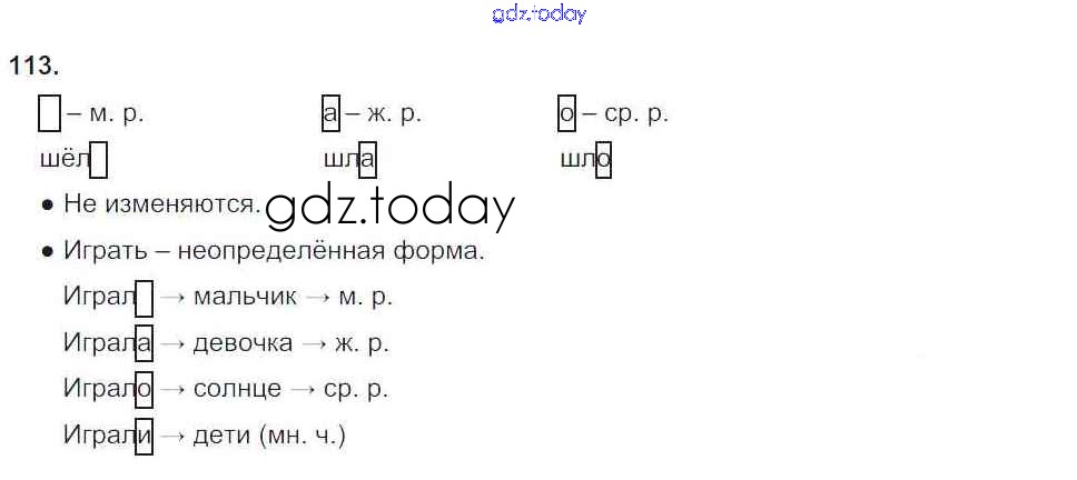 На страницах сайта gdz.today вы найдете учебный и вспомогательный материал, направленный на улучшения знаний школьной программы. ГДЗ - онлайн мир знаний Решение к части 2. (упражнения) 113 Тетради для упражнений по Русскому языку для 4 класса Рамзаева, Свинкина Дрофа 2013