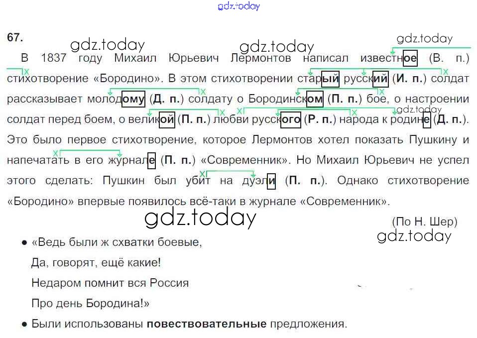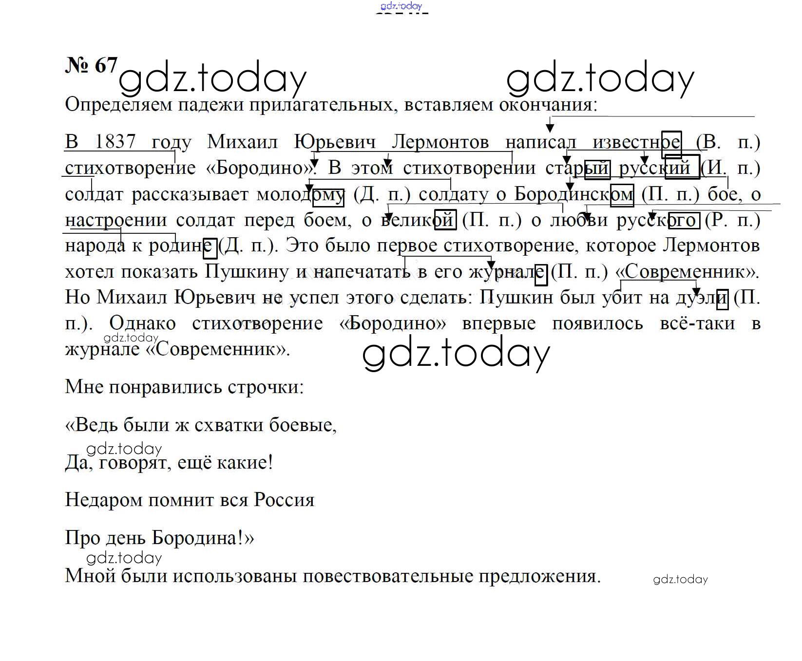 На страницах сайта gdz.today вы найдете учебный и вспомогательный материал, направленный на улучшения знаний школьной программы. ГДЗ - онлайн мир знаний Решение к части 2. (упражнения) 67 Тетради для упражнений по Русскому языку для 4 класса Рамзаева, Свинкина Дрофа 2013