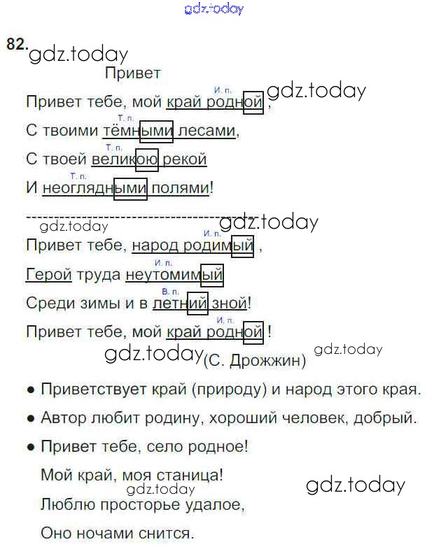На страницах сайта gdz.today вы найдете учебный и вспомогательный материал, направленный на улучшения знаний школьной программы. ГДЗ - онлайн мир знаний Решение к части 2. (упражнения) 82 Тетради для упражнений по Русскому языку для 4 класса Рамзаева, Свинкина Дрофа 2013