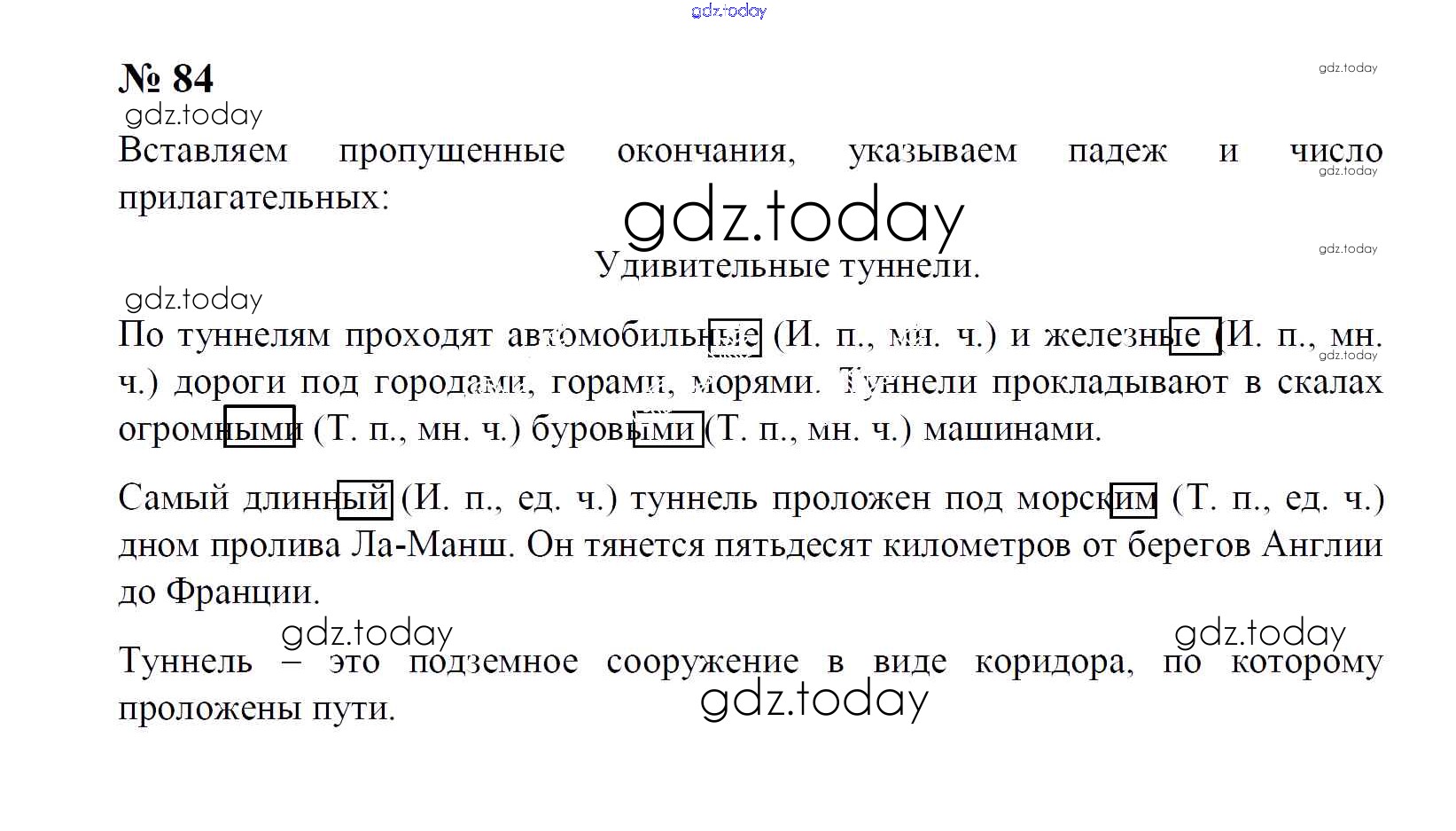 На страницах сайта gdz.today вы найдете учебный и вспомогательный материал, направленный на улучшения знаний школьной программы. ГДЗ - онлайн мир знаний Решение к части 2. (упражнения) 84 Тетради для упражнений по Русскому языку для 4 класса Рамзаева, Свинкина Дрофа 2013
