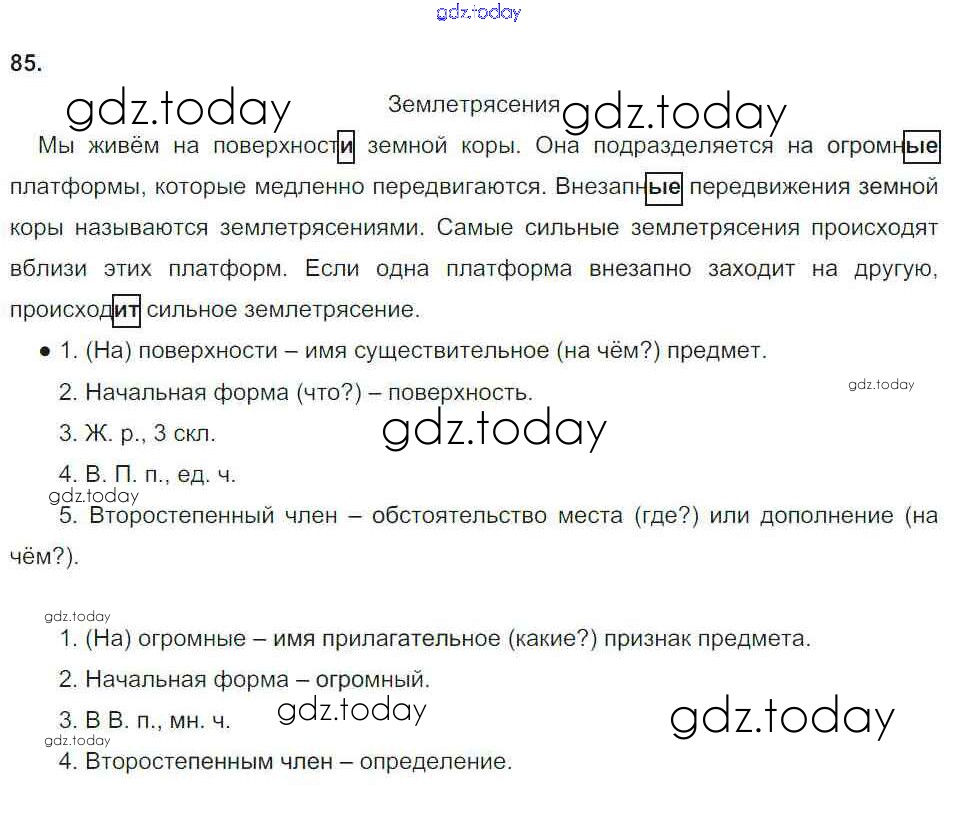 На страницах сайта gdz.today вы найдете учебный и вспомогательный материал, направленный на улучшения знаний школьной программы. ГДЗ - онлайн мир знаний Решение к части 2. (упражнения) 85 Тетради для упражнений по Русскому языку для 4 класса Рамзаева, Свинкина Дрофа 2013