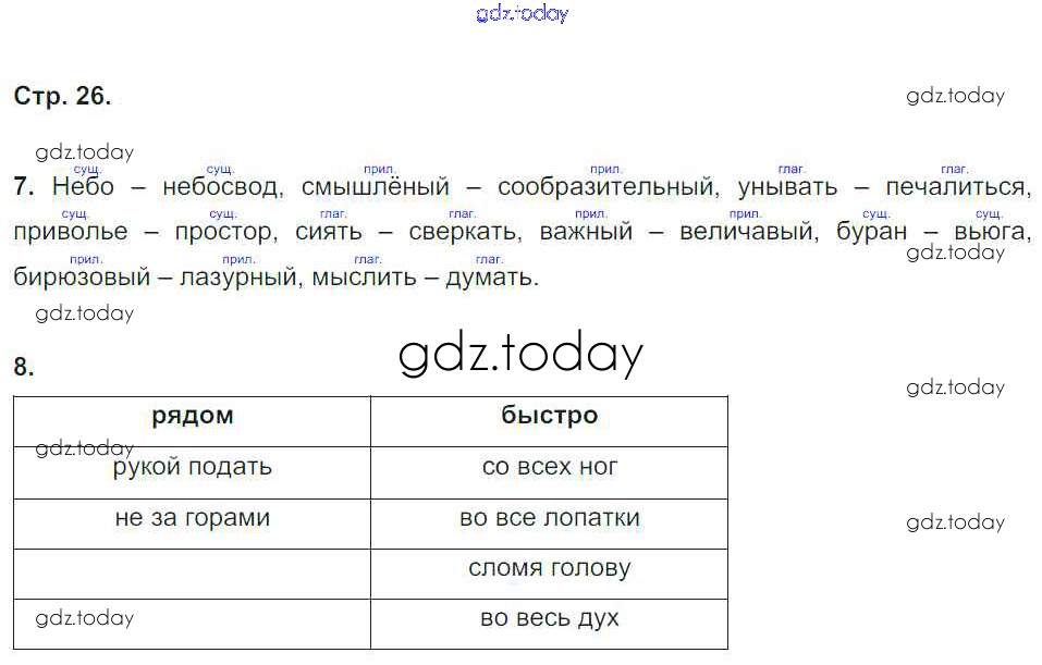 На страницах сайта gdz.today вы найдете учебный и вспомогательный материал, направленный на улучшения знаний школьной программы. ГДЗ - онлайн мир знаний Решение к части 1. Страницы 26 Рабочей тетради по Русскому языку для 4 класса Тихомирова Экзамен 2018