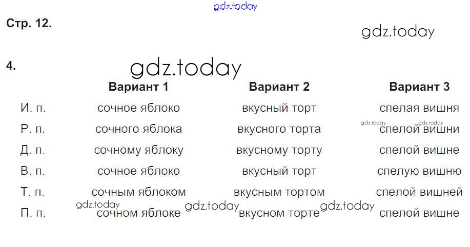 На страницах сайта gdz.today вы найдете учебный и вспомогательный материал, направленный на улучшения знаний школьной программы. ГДЗ - онлайн мир знаний Решение к части 2. Страницы 12 Рабочей тетради по Русскому языку для 4 класса Тихомирова Экзамен 2018