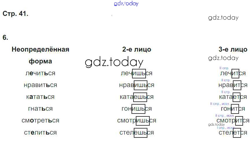 На страницах сайта gdz.today вы найдете учебный и вспомогательный материал, направленный на улучшения знаний школьной программы. ГДЗ - онлайн мир знаний Решение к части 2. Страницы 41 Рабочей тетради по Русскому языку для 4 класса Тихомирова Экзамен 2018
