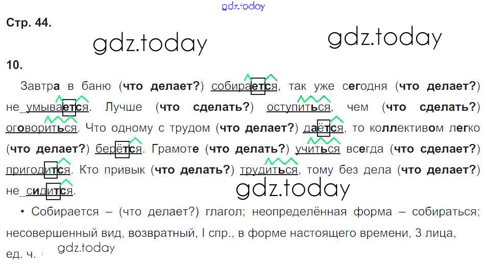 На страницах сайта gdz.today вы найдете учебный и вспомогательный материал, направленный на улучшения знаний школьной программы. ГДЗ - онлайн мир знаний Решение к части 2. Страницы 44 Рабочей тетради по Русскому языку для 4 класса Тихомирова Экзамен 2018
