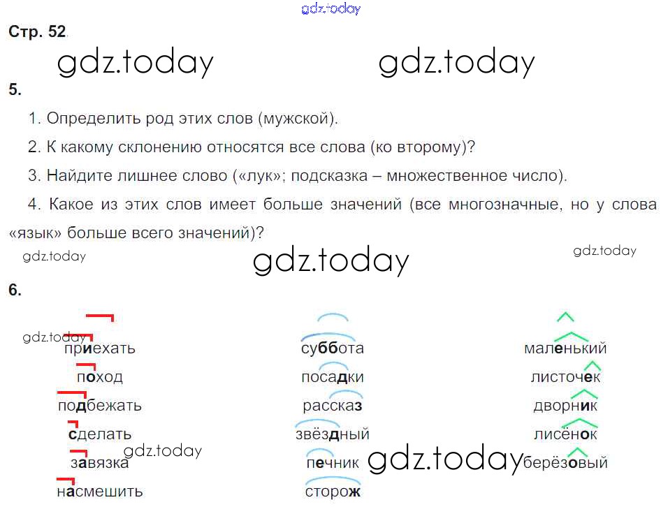 На страницах сайта gdz.today вы найдете учебный и вспомогательный материал, направленный на улучшения знаний школьной программы. ГДЗ - онлайн мир знаний Решение к части 2. Страницы 52 Рабочей тетради по Русскому языку для 4 класса Тихомирова Экзамен 2018