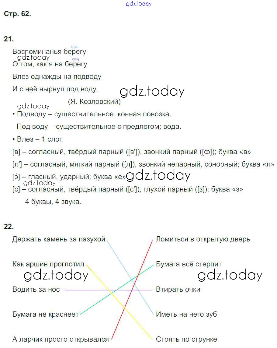 На страницах сайта gdz.today вы найдете учебный и вспомогательный материал, направленный на улучшения знаний школьной программы. ГДЗ - онлайн мир знаний Решение к части 2. Страницы 62 Рабочей тетради по Русскому языку для 4 класса Тихомирова Экзамен 2018