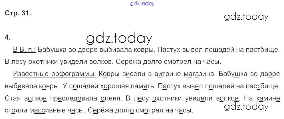 На страницах сайта gdz.today вы найдете учебный и вспомогательный материал, направленный на улучшения знаний школьной программы. ГДЗ - онлайн мир знаний Решение. Часть 2. Страницы 31 Рабочей тетради по Русскому языку для 4 класса Тихомирова Экзамен УМК 2016