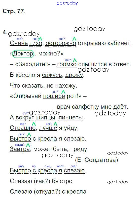 На страницах сайта gdz.today вы найдете учебный и вспомогательный материал, направленный на улучшения знаний школьной программы. ГДЗ - онлайн мир знаний Решение. Часть 2. Страницы 77 Рабочей тетради по Русскому языку для 4 класса Тихомирова Экзамен УМК 2016