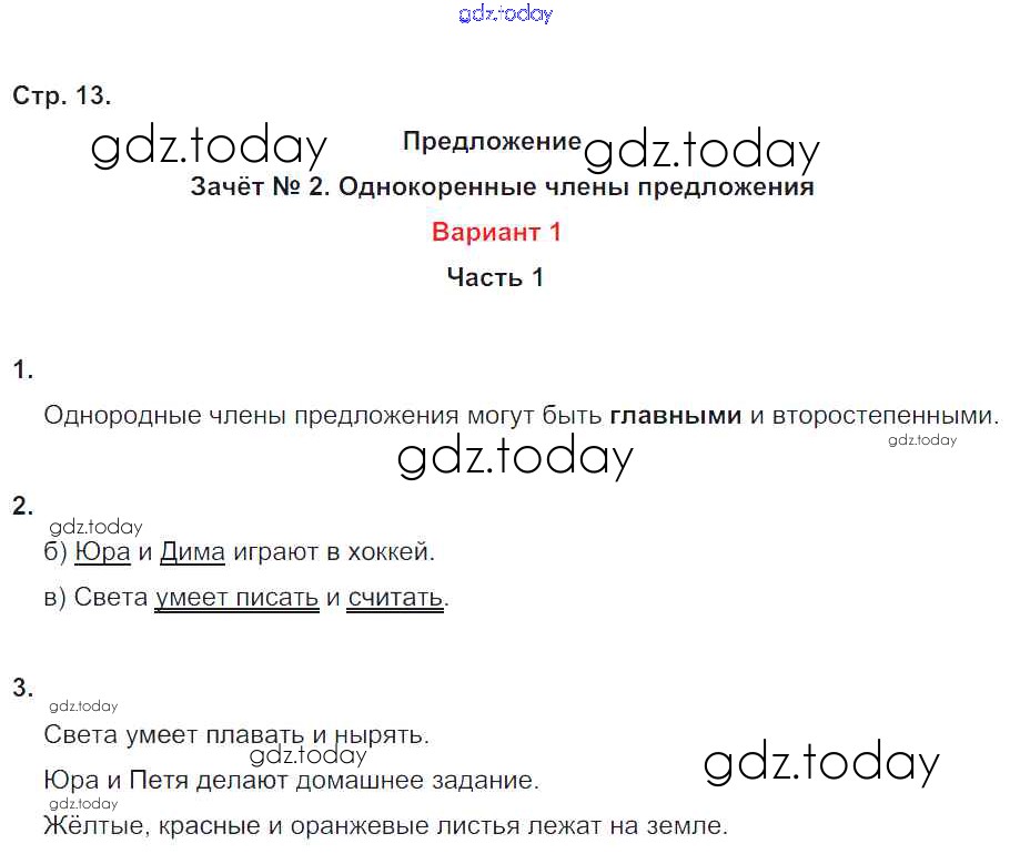 На страницах сайта gdz.today вы найдете учебный и вспомогательный материал, направленный на улучшения знаний школьной программы. ГДЗ - онлайн мир знаний Решение к части 1. Страницы 13 Зачётным работам по Русскому языку для 4 класса Алимпиева, Векшина Экзамен УМК 2016