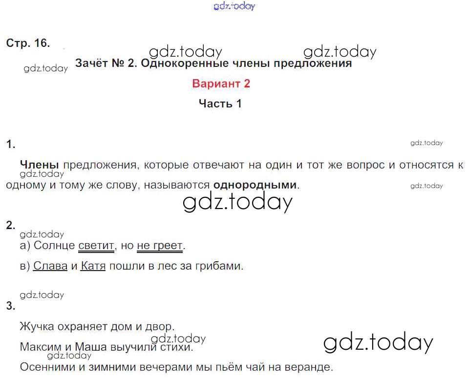 На страницах сайта gdz.today вы найдете учебный и вспомогательный материал, направленный на улучшения знаний школьной программы. ГДЗ - онлайн мир знаний Решение к части 1. Страницы 16 Зачётным работам по Русскому языку для 4 класса Алимпиева, Векшина Экзамен УМК 2016