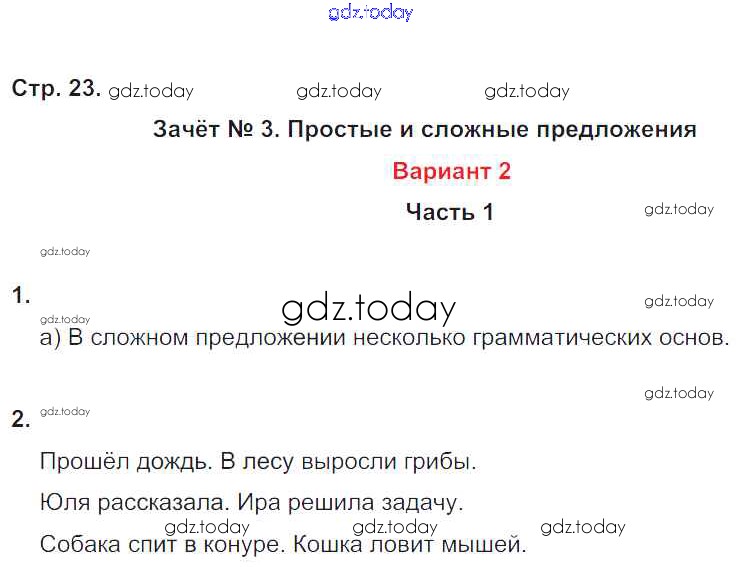 На страницах сайта gdz.today вы найдете учебный и вспомогательный материал, направленный на улучшения знаний школьной программы. ГДЗ - онлайн мир знаний Решение к части 1. Страницы 23 Зачётным работам по Русскому языку для 4 класса Алимпиева, Векшина Экзамен УМК 2016