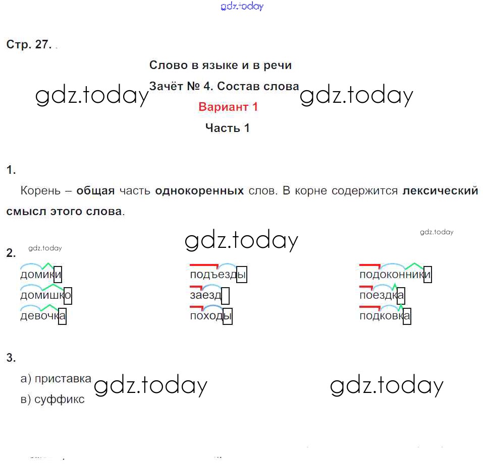 Ответы к Решение к части 1. Страницы 27 Зачётным работам по Русскому языку для 4 класса Алимпиева, Векшина Экзамен УМК 2016